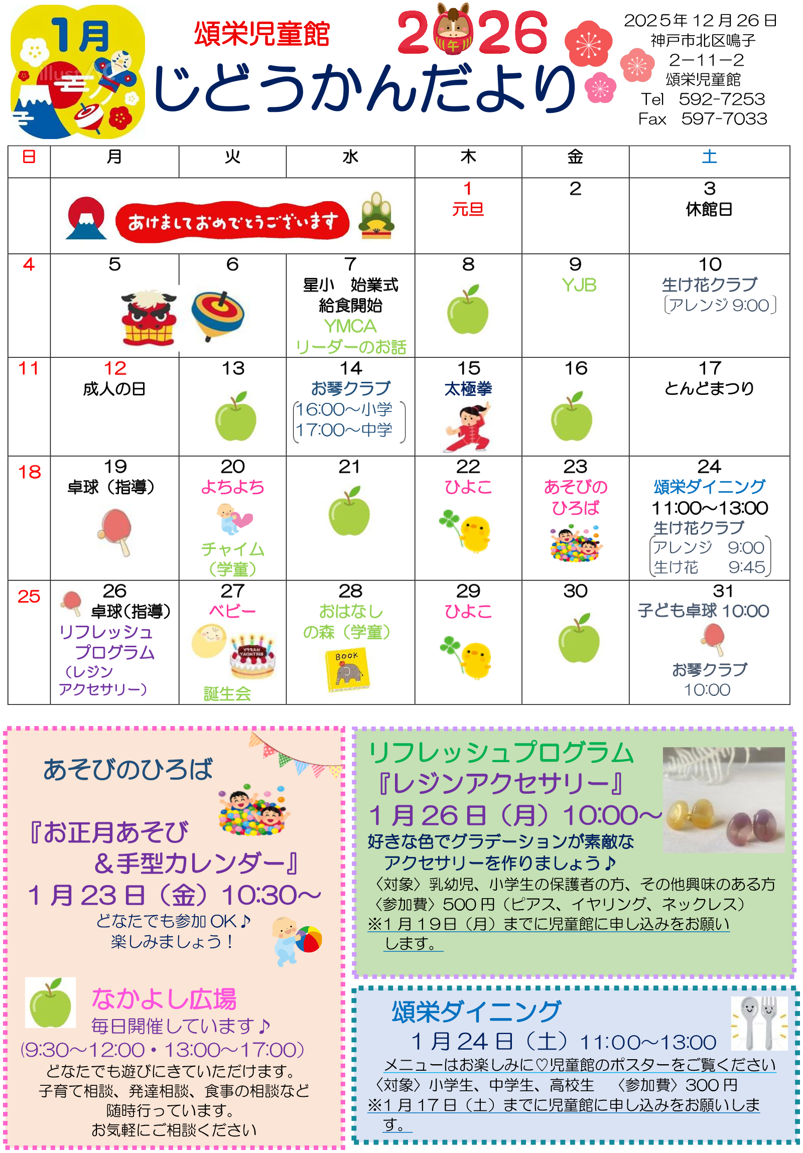 頌栄児童館だより2026年1月